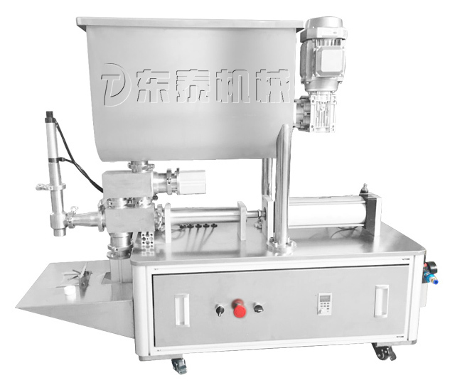 DTG-500-DV型半自動辣椒醬灌裝機結構合理、機型小巧、性能可靠、定量準確、操作方便,動力部分采用氣動結構,均采用國內知名氣動元件。物料接觸部分均采用304不銹鋼材料制成,符合GMP認證的要求。采用加大攪拌料斗,料斗容積可達120L,立的全鋁外殼銅芯攪拌電機,變頻調速,可適應于各種醬料的灌裝??筛鶕?jù)用戶需要在機型范圍內任意調節(jié)灌裝量及灌裝速度,灌裝精度高。灌裝悶頭采用防滴漏裝置。